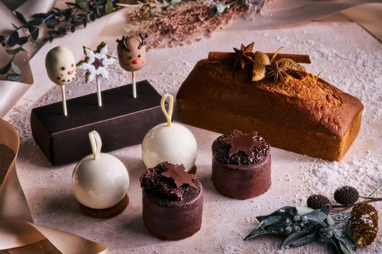 降り積もった雪のようなココナッツフレークを纏った「ノワ ド ココ」や、ボールオーナメントをイメージした期間限定デザインの「フェスティブ ノワ ド ココ」などクリスマスや年末年始のホリデームードを盛り上げるケーキをご提供いたします。また、風味豊かなオリジナルガナッシュをスポンジとともにチョコレートでコーティングした、トナカイ、スノーフレーク、スノーマンのかわいらしいフェスティブロリポップのセットや、優しいシナモンパウダーの香りと、フルーツ、スパイス、ナッツの風味が一体となったホテルオリジナルの「シュトーレン」など、クリスマスを心待ちに楽しめるスイーツの数々も登場いたします。