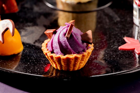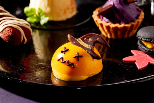 ブラックユーモアのあるインパクト抜群のスイーツやセイボリーが勢ぞろいしており、紫芋やパンプキンなどの秋の味覚も取り入れた、見た目にも味にも楽しめる要素がたっぷりの内容になっております。