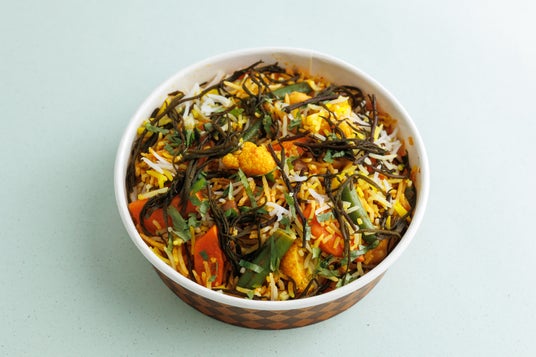 “からだにやさしい料理”をコンセプトしたインド料理店からは、ひじきを贅沢に使用したプラオ(インド風ピラフ)がお目見え。スパイシーな辛さの中に若ひじきの香りと風味がしっかりと感じられます。パラっとしたお米と若ひじきのコリっとした食感も抜群です。