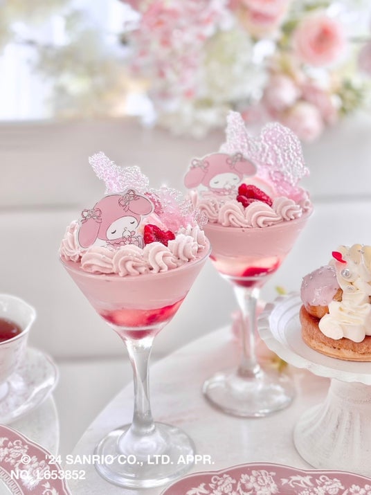 マイメロディ & テディジンジャー コラボアフタヌーンティー マイメロディ パフェ & オリジナルコースター付き マイメロ ドリンク付き」 8000円(税込)通常一名様/6000円~ ご予約は2名様より