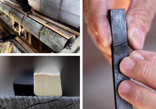 原料となる竹素材にもこだわり、無農薬の四国産孟宗竹を熟練の竹炭職人が焼き上げています。土窯焼成は、竹炭の品質を最大限に高めるための伝統的かつ高度な技術です。焼き上げられた竹炭はしっかりとした厚みもあり、キンキンと響く金属音がその硬質さと高温焼成を示しています。他の竹炭とは一線を画す高い品質を実現しており、他では味わえない「本物」の竹炭です。