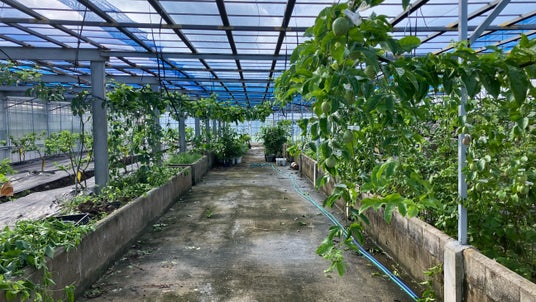 台風の被害が多い石垣島では、強固な施設が必要になる反面、風雨から作物を守る施設は果樹栽培に欠かせません。