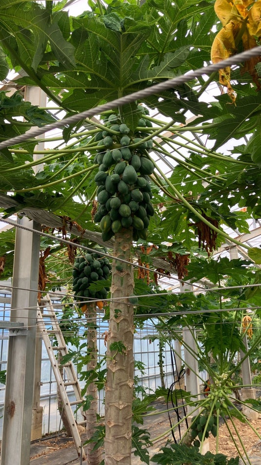 パパイヤ。収穫が近づくとオレンジに色づきます