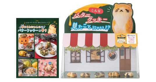 株式会社アデリー(本社:山口県柳井市、代表取締役社長:小野典子)が企画・販売する猫の形の立体クッキー『おひるねにゃんこはバタークッキーの香り』。