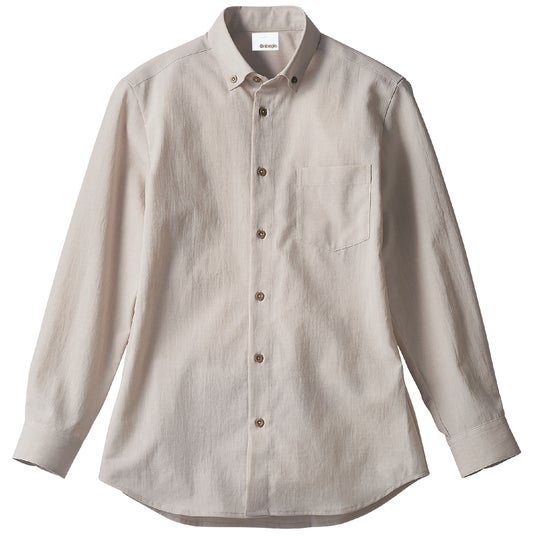【着用ユニフォーム】『たまねぎの皮』と『竹炭』の天然成分を配合した染料と化学染料のハイブリット染により、ナチュラルに染め上げたライトグレーのトップスです。