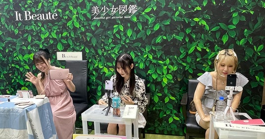 また、ブース内では本商品をプロデュースした萌花、宇咲美りあ、りり姫の3名が「ミクチャ」にてライブ配信を行いました。それぞれがプロデュースした商品の特徴やこだわりポイントをリスナー(視聴者)に向けてお伝えし、本人コメント&サイン入りの数量限定プロデューサーパッケージ(全3種/各1,728円・税込)をわずか4時間で203個予約受注するなど注目度の高さがうかがえました。
