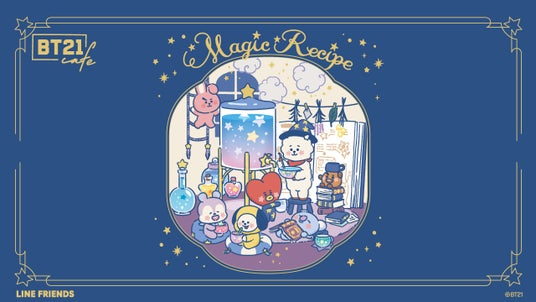 2024年、「BT21カフェ」第15弾の開催が決定いたしました。今回は、RJがBT21のみんなへの思いややさしさを込めて作った、 “MAGIC RECIPE(マジックレシピ)”がコンセプトのテーマカフェです。