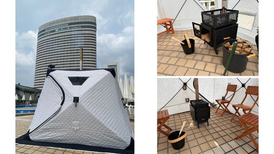株式会社神戸ポートピアホテル(神戸市中央区 総支配人 伊藤 剛)は2024年9月21日(土)より屋外プールエリアにおいてテントサウナ「ルーフガーデンサウナ」の営業を開始します。夏季シーズン時にはリゾート感あふれるプールとして定評のある南館4階「ルーフガーデンプール」のエリアにて、薪ストーブを用いたテントサウナを2基設置します。テントサウナを試してみたい、いつもとは違った“ととのい”体験を味わってみたい方にぴったりです。昼は青空の下、夜には幻想的なライトアップ空間の中で外気浴をするひとときは格別です。家族・友人・カップルでのご利用など、開放的な空間で極上の“ととのう”体験をお愉しみください。