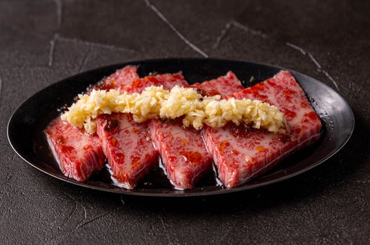 口の中でジュワっとした脂が溢れ出す特上カルビには、香ばしい香りのにんにくとの相性抜群!お肉の表面を焦がさない程度に焼き、にんにくのカリカリにしてお召し上がりいただくのがお勧めです。