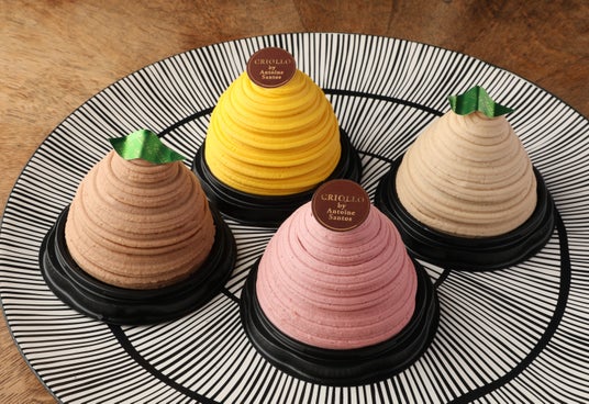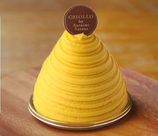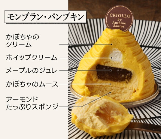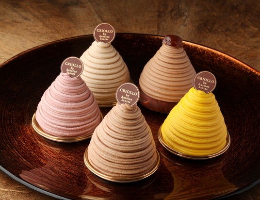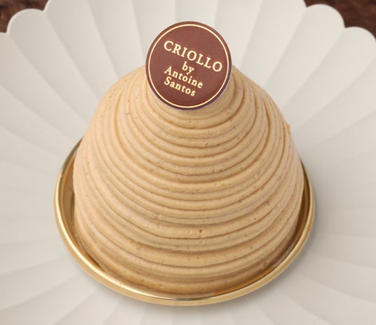 東京23区で1位に輝いたことのあるクリオロのモンブラン。外側のマロンクリームの中には、ホイップクリームだけでなく滑らかなマロンのムースや、ラム酒のクリームが層になっています。さらに、一番下のサクサクとしたメレンゲが食感のアクセントに。サクサク感が長い間楽しめるように、チョコレートでコーティングしているところもサントスシェフならでは。パティシエがひとつひとつ丁寧にクリームを絞り、この美しい形に仕上げています。味と見た目の両方にこだわった、クリオロの自信作です。