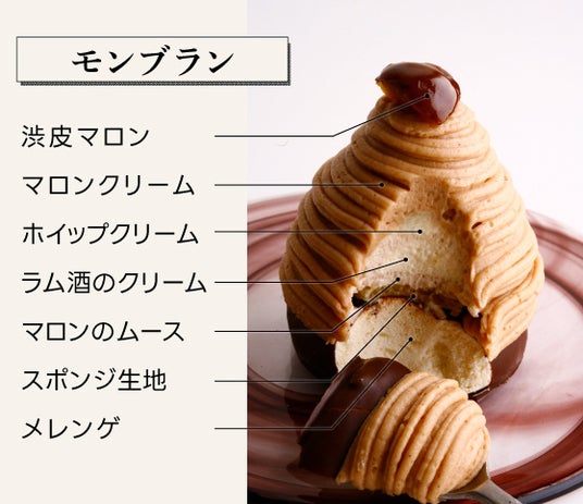 通常は店舗販売のみの「モンブラン」ですが、モンブランフェア開催期間は数量限定で、オンラインショップでもご注文を承っております。(配送上の都合により、店頭の商品とは若干異なります)