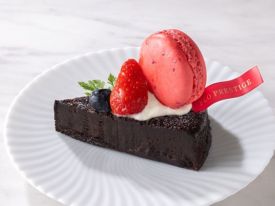 濃厚なショコラケーキに、マスカルポーネクリームと苺、ブルーベリー、マカロン(フランボワーズ)をトッピングしました。食べきりサイズの大変お得なケーキです♪