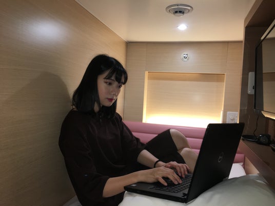 キャビンブース内はコンパクトですが機能的な作りとなっており、ブース内でのPC作業も十分なスペースがございます。