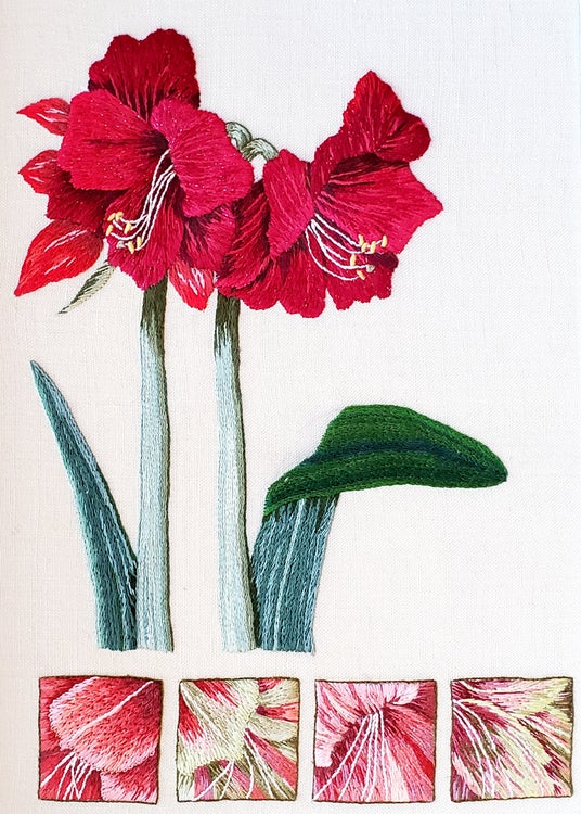 刺繍は、針と糸とが織りなす華麗な造形美。今回のテーマは「花ごよみ」となり、時を超えて日本人の心に語りかけてくる馴染み深い花々を表現いたしました。作家の温もりが感じられるアートを、どうぞ心ゆくまでお楽しみください。