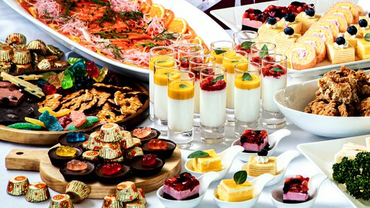 立食ブッフェ形式で限定スイーツやお食事を楽しめる