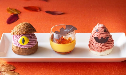 d5113-3304-bd8ab1dd0dee4ee9a598d9919fe64032.pdfペストリーシェフ・田中 麗人による、シンプルで上品なフォルムの中に、こだわりの味わいが詰まったハロウィンスイーツが新登場。定番人気のスイーツ3種が、シュークリームはモンスターに、プリンにはコウモリが飛び、モンブランはオバケにそれぞれ変身!ハロウィンらしさを楽しみながら、ホテルスイーツの奥深い美味しさを感じていただけます。
