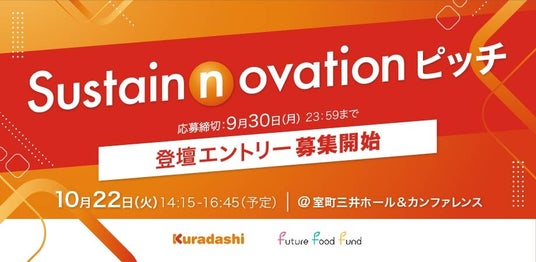 株式会社クラダシ(本社:東京都品川区、代表取締役社長CEO:河村晃平、以下「クラダシ」)は、食品のサブスクリプションサービスを提供するオイシックス・ラ・大地株式会社(本社:東京都品川区、代表取締役社長:高島 宏平、以下「オイシックス・ラ・大地」)の 投資子会社Future Food Fund株式会社(本社:東京都品川区、代表取締役:松本浩平、以下「Future Food Fund」)と共催にて、食のサステナビリティ課題に挑むスタートアップピッチコンテスト「Sustainnovation ピッチ」を10月22日に開催いたします。コンテスト開催にあたり参加する起業家・企業の募集を9月10日より開始いたします。また当コンテストの最終ピッチは、クラダシが10月22日に室町三井ホール&カンファレンスで開催する「食のサステナビリティ共創・協働」フォーラム内にて開催いたします。