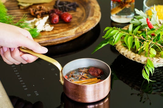 星のや沖縄内のキッチンスタジオ「ゆがふキッチン」には、ハーブガーデンが併設されており、島こしょうと呼ばれる「ピパーチ」や島唐辛子、琉球シナモンと呼ばれる「カラキ」など沖縄特有のスパイスが育ちます。琉球王朝時代の各国との交易によって伝来したスパイスは、昔から日々の食事や宮廷料理にも取り入れられてきました(*2)。スパイスワークショップでは、琉球王朝時代から親しまれるスパイスの使い方や歴史的背景について学ぶ他、「スパイステイスティング」を行い、お茶に仕立てたスパイスで自分の好みの味わいや香りを見つけます。また、摘み取ったばかりのフレッシュな香りのスパイスに、丁子(クローブ)や八角、ショウガなどドライのスパイスもあわせてスパイスオイルとシロップ作りを体験。シロップをソーダで割ったり、オイルをサラダに合わせたり、滞在中にさまざまな組み合わせで味わえる他、持ち帰って自宅でも楽しめます。