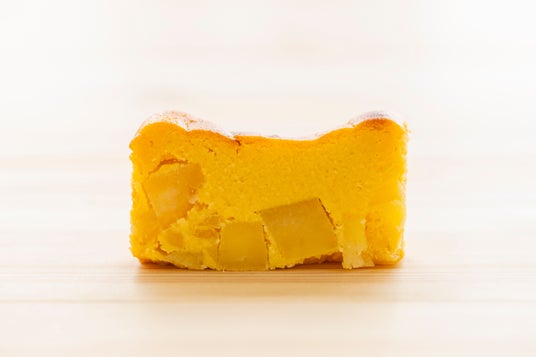 ケーキの生地にさつまいもを使用するのはもちろん、キューブ状にカットしたさつまいもも中に入れています。