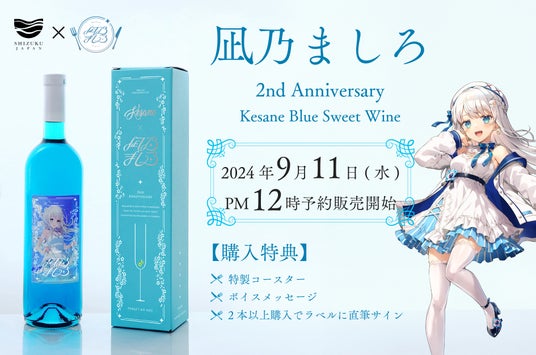 2024年9月10日、Shizuku Japan株式会社(本社:山口県防府市)は、人気Vtuber・凪乃ましろさんの活動2周年を記念し、特別なコラボレーション商品「凪乃ましろ 2nd Anniversary Collaboration ブルースイートワイン ケサネ」を発売いたします。