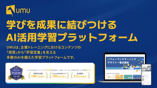 UMUは、AIテクノロジーと学習の科学によって、企業トレーニングに革命をもたらす学習プラットフォームです。様々な業界で使用されているUMUは、最新のAIを用いて人材育成の効果・効率を高めて従業員のパフォーマンスを向上させ、企業の業績を向上させます。