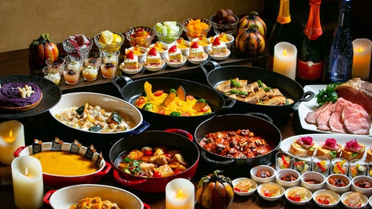 千葉県の新名物「黒アヒージョ」ホテルオリジナル”水郷赤鶏の黒アヒージョ”を始め、約40種の料理が並ぶ「ハロウィーンホリデーディナーブッフェ」