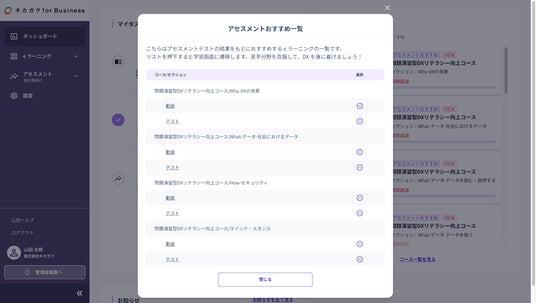 - アセスメント結果に基づき、個々のユーザーの弱点に特化した eラーニング講座を自動的にレコメンド