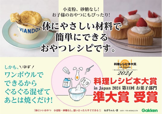 株式会社 学研ホールディングス(東京・品川/代表取締役社長:宮原博昭)のグループ会社、株式会社 Gakken(東京・品川/代表取締役社長:五郎丸 徹)発行の料理書『体にいいおやつ 小麦粉・砂糖なし。思い立ったらすぐできる!』が、2024年9月10日に開催された「第11回 料理レシピ本大賞 in Japan 2024」において、「お菓子部門 準大賞」を受賞いたしました。