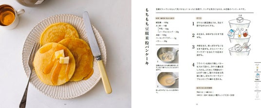 ▲もっちり食感でリッチな気分になれる「もちもち豆腐米粉パンケーキ」。材料も作り方も超シンプルで、思い立ったらすぐ作れる著者お気に入りのレシピばかり