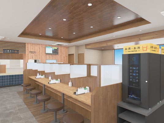 新店舗は、苅田町の中心市街地を南北に縦断する主要幹線の国道10号線沿い、駐車場は36台、店舗も大きく46席をゆったりと配置。ドライブスルーも設置しており、テイクアウトのドライバーのご要望にも対応致します。