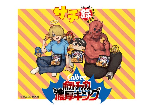 「ポテトチップス濃厚キング」は、集英社の漫画誌アプリ「少年ジャンプ+」の人気作品『サチ録~サチの黙示録~』とコラボレーションし、作者・茶んた氏が描き下ろしたイラストを使用したオリジナル広告を「少年ジャンプ+」内で展開するとともに、店頭用販促物でも使用します。