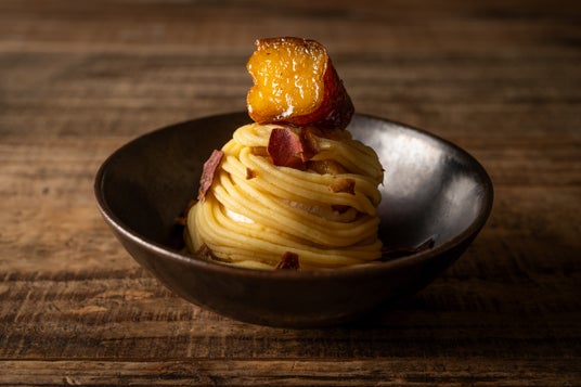 牛赤身と地鶏の挽肉に、にんじん、たまねぎ、セロリ、隠し味には麦みそを忍ばせてコクをプラスした特製ボロネーゼソース。