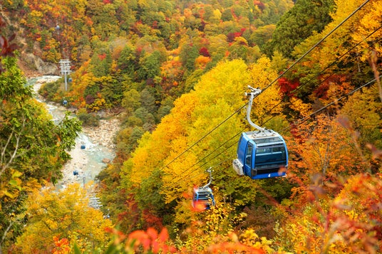 苗場ドラゴンドラは、苗場スキー場とかぐらスキー場を結ぶ日本最長のゴンドラで、全長 5.5km の空中散歩をお楽しみいただけます。また、田代ロープウェーは、奥清津発電所上空にて瞬間地上高 230m と日本一の高さとなり、エメラルドグリーンに輝く二居湖と、湖岸の紅葉による美しいコントラストがお楽しみいただけます。
