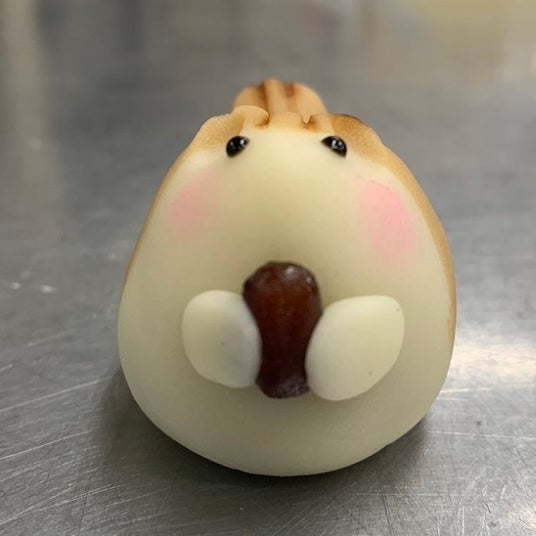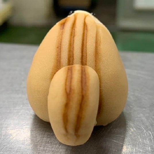 手亡豆(白いんげん豆)の白こし餡に柔らかい餅を混ぜ込み、粘りを出した練り切り餡でこし餡を包み成型した、なめらかなくちどけと上品な甘さが特徴の和菓子です。