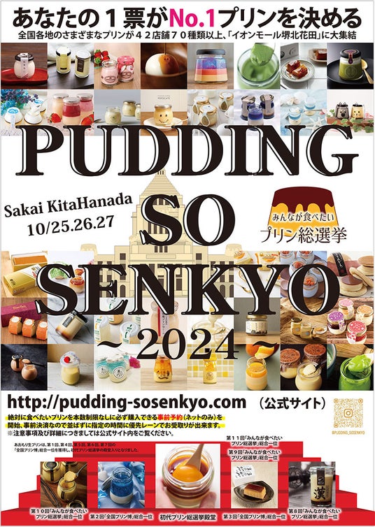 関西及び東海・関東地方中心にイベントの企画・運営を展開する株式会社サテライトジャパン(本社:兵庫県芦屋市)は、イオンモール堺北花田(運営:イオンモール株式会社)にて”北海道から沖縄まで全国各地のさまざまなプリンが大集結する”「第13回みんなが食べたいプリン総選挙」を2024年10月25日(金)~27日(日)の3日間の日程で開催します。