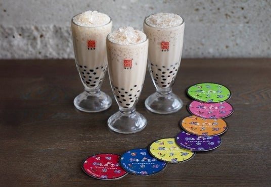 このたび、丸山氏がアイドルたちの衣装を手掛けた『うたの☆プリンスさまっ♪』とのトリプルコラボにて限定セットメニューを販売致します。期間限定でドリンクとコースターのセットを表参道店で販売致します。ドリンクはミルクティーシリーズ3種類(タピオカミルクティー・タピオカジャスミンミルクティー・タピオカ鉄観音ミルクティー)、コースターは7種類(一十木音也・聖川真斗・四ノ宮那月・一ノ瀬トキヤ・神宮寺レン・来栖 翔・愛島セシル)から1種類ずつお選びいただけます。特製コースター付きドリンクセットは無くなり次第終了とさせていただきます。
