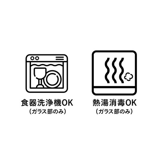 本体のガラス部のみ食器洗浄機や煮沸消毒も出来るので、衛生的にお使い頂けます。
