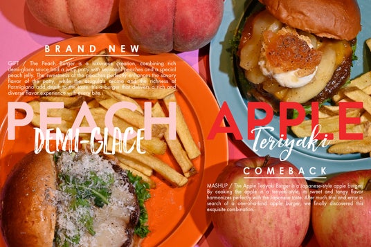大人気だった「MASHUP(アップルテリヤキバーガー)」が待望の復活を遂げ、新たに「GIFT(ピーチバーガー)」が初登場します。