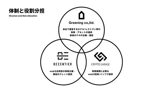 株式会社GREENING(東京都渋谷区、取締役CEO:関口 正人、以下「GREENING」)、株式会社Crypto Garage(東京都渋谷区、代表取締役:大熊 将人、以下「Crypto Garage」)、株式会社Decentier(東京都目黒区、代表取締役:小畑 翔悟、以下「Decentier」)の3社は、業務提携に関する基本合意書を締結したことをお知らせします。