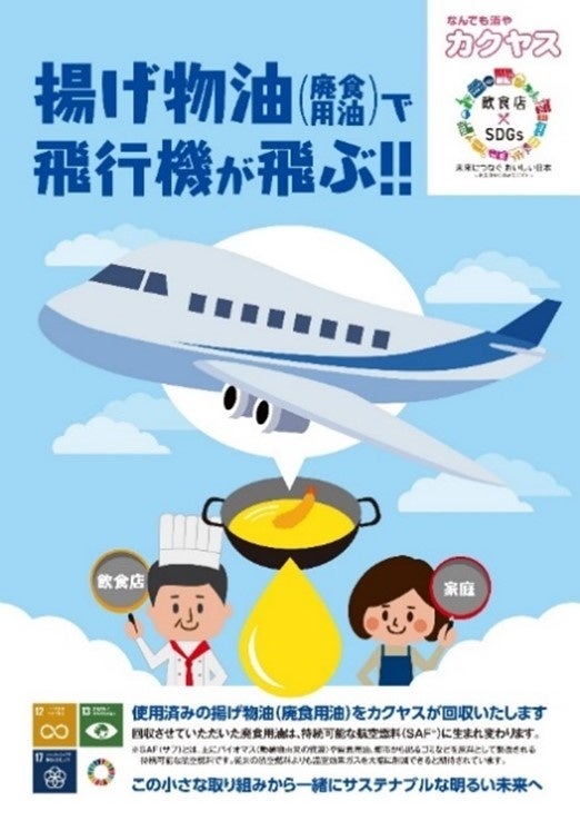 カクヤス、家庭や飲食店から出る廃食用油の回収サービスを6月24日(月)より開始!回収した廃食用油は、SAF(持続可能な航空燃料)等に再資源化~2way型サービスを活用し、温室効果ガス削減に貢献~