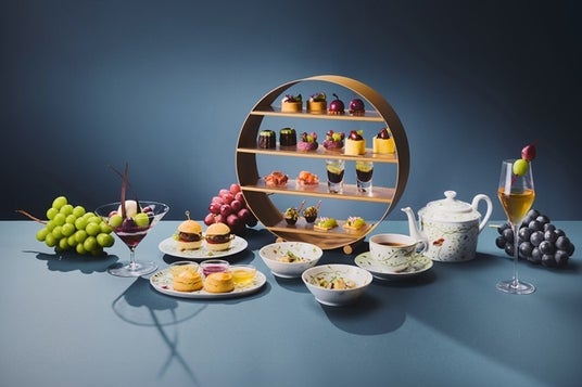 エグゼクティブペストリーシェフ 吉田修がお届けする、アフタヌーンティー第三弾の主役は、ぶどう。2024年10月1日(火)から11月10日(日)までの期間限定で提供します。秋を迎え、たわわに実ったぶどうは、まるで輝く宝石。華やかな香り、ぷるんと透き通った果肉、爽やかで甘い果汁をたっぷりと滴らせるぶどうは、秋の恵みの象徴です。レーズンの香りをまとったウェルカムドリンク「Silky Grape」からスタートし、「3種のぶどうのパルフェ」、スタンドには可憐なスイーツやフレンチの技が光るセイボリーが並びます。フランスの名門ブランド「ダマンフレール」の香り高い紅茶とともに、一服のひとときを。