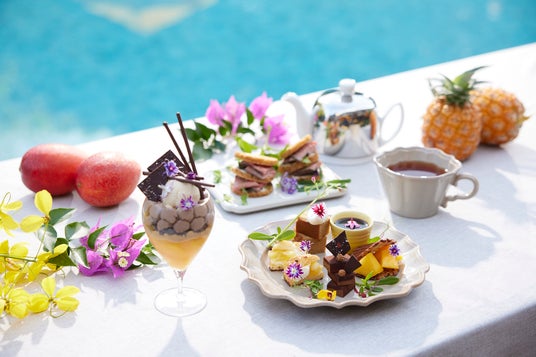 プラン限定で用意した黒糖尽くしのアフタヌーンティーで、ホテルでの贅沢なひとときを過ごすことができます。黒糖アイスや黒糖クリームをトッピングしたパフェ、黒糖パンを使ったローストビーフサンドなど、黒糖の深いコクや甘みを活かしたティーセットで、黒糖を心ゆくまで堪能できます。