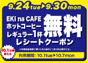 NewDaysのオリジナルブランドパン「Panest」ご購入のレシートにEKI na CAFEホットコーヒーレギュラー(ふつう)サイズ1杯無料クーポンが印字されます。