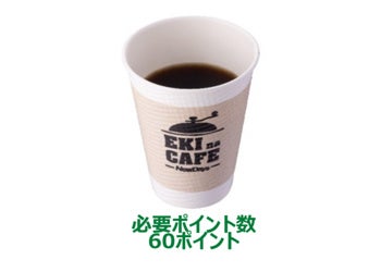 NewDaysアプリと連携したJRE POINTを利用して、EKI na CAFEホットコーヒーレギュラーサイズを商品の価格よりおトクなポイント数でクーポンに交換できます。
