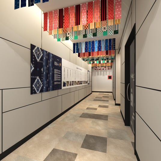 久留米絣を使用した館内の装飾(1階 レガネット久留米タミー店横)