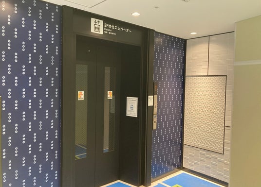 久留米絣をモチーフにした館内外の装飾(1階レガネット久留米タミー店付近エレベーター)