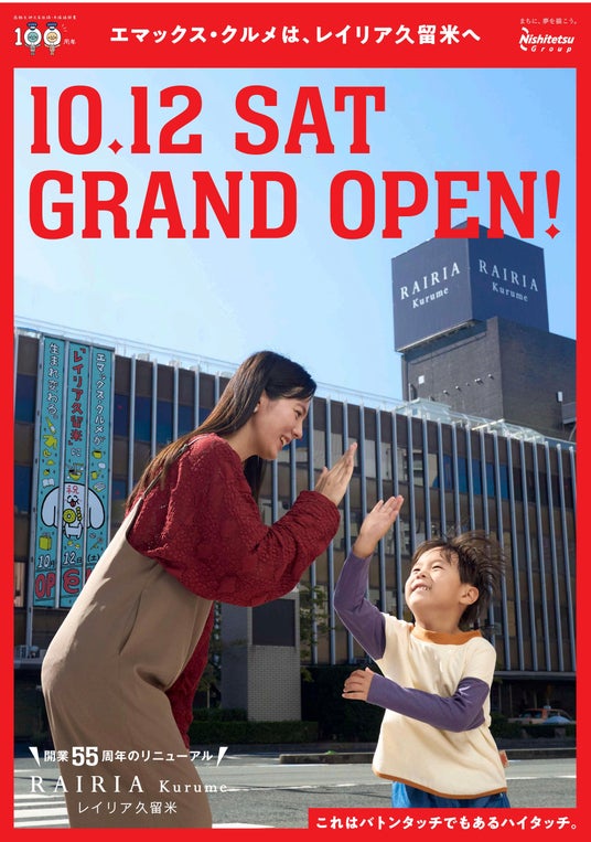 西日本鉄道(株)では、西鉄久留米駅ビルのリニューアル工事完了に伴い、商業施設「エマックス・クルメ」の名称を「レイリア久留米」に改め、2024年10月12日(土)午前10時にグランドオープンいたします。同日より、ファストフードやカフェ、食物販など魅力あふれる新規15店舗が営業を開始します。