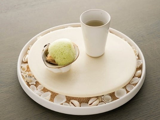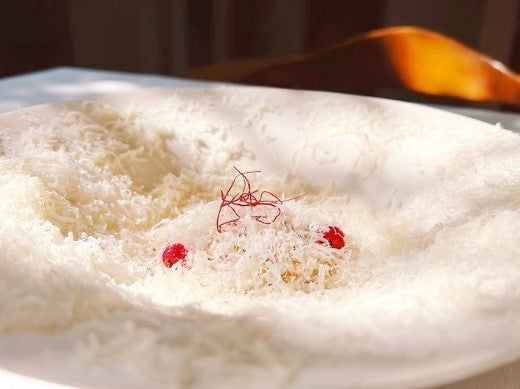 フランス修業時代、世界中の料理人と交流を深めた。イカのカルボナーラはパリのシェフと共作した思い出。
