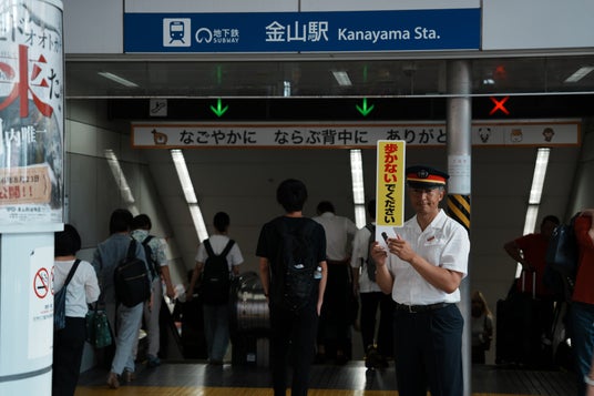 名古屋市では、エスカレーターの安全な利用の促進に関する条例施行に伴い、昨年から啓蒙活動を実施している。この啓発活動は、エスカレーターには『止まって乗る』『2列で乗る』ことを推奨し、国民の意識改革を目的としている。