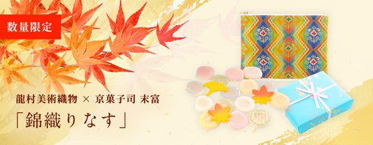 株式会社龍村美術織物(本社:京都府京都市右京区、代表取締役:龍村育)は、2024年9月13日(金)より、京菓子司 末富とのコラボレーションによる秋季限定企画の新商品「錦織りなす(干菓子付き)」を数量限定にて販売開始致しました。伝統の絹織物と京菓子の組み合わせによる特別な一品は、ギフトにはもちろん、ちょっとしたお茶席などのシーンも秋らしく彩ります。